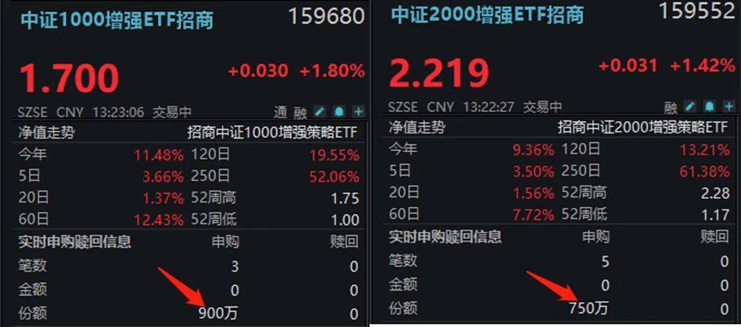2月9日,A股中小盘风格盘持续占优!截至13时28分长沙股票配资平台,中证1000增强ETF招商(159680)、中证2000增强ETF招商(159552)分别涨1.86%、1.55%,同步获得可观的资金净流入。