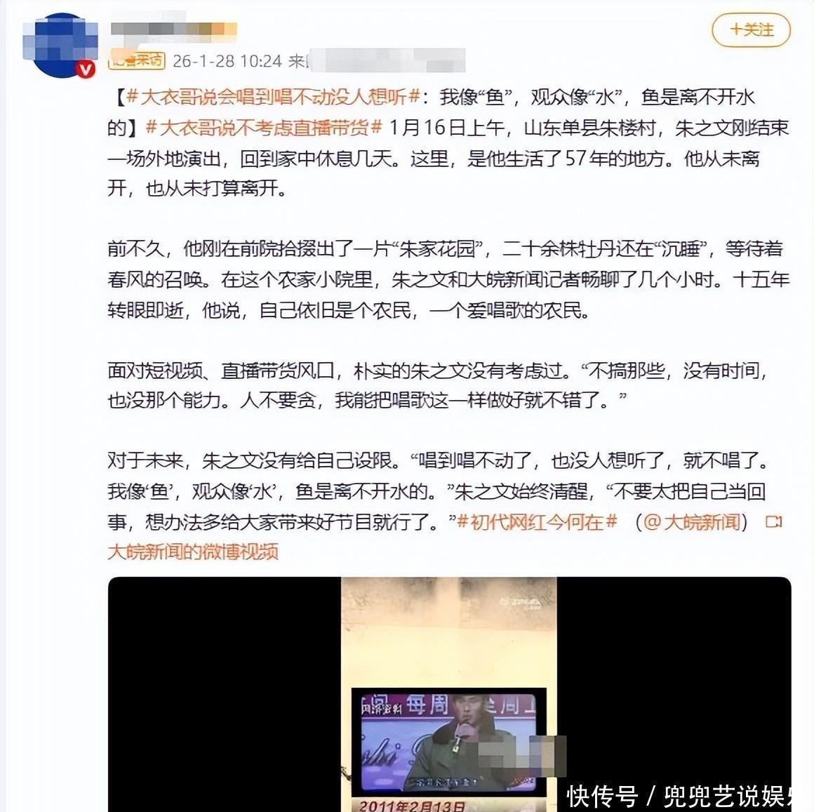 大皖新闻(当年走红的网红现在怎样|火了15年后,“大衣哥”朱之文:我依旧是那个热爱唱歌的农民 2026.1.28)