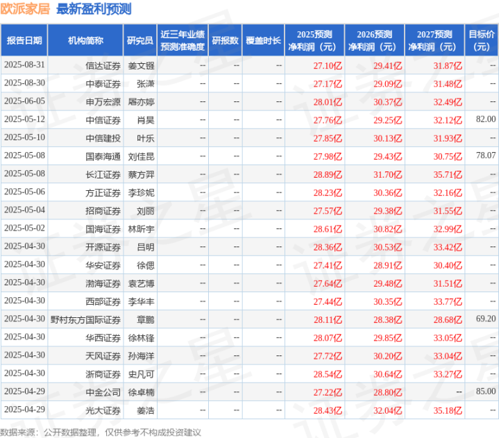 公司正处于“大家居”深化改革阶段,2023年积极推进组织架构改革,变“垂直产品条线组织”为“横向区域块状组织”,随着营销组织架构变革落地,品类融合将进一步加快,提升公司核心竞争力和市场份额,业绩有望稳定增长。我们预计公司2025-2027年营收分别为200.26/211.04/221.28亿元,分别同比增长5.8%/5.4%/4.9%;归母净利润分别为27.41/29/30.48亿元,分别同比增长5.4%/5.8%/5.1%;EPS分别为4.50/4.76/5.00元,截至2025年8月29日,对应PE分别为12.3/11.63/11.06倍。维持“买入”评级。