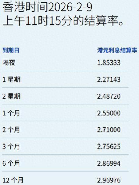 智通财经APP获悉杠杆配资业务,2月9日,港元拆息普遍下跌,而与楼按相关的一个月拆息报2.55%,跌3.815基点,连跌两日,为2月4日后最低。反映银行资金成本的三个月拆息报2.75625%,跌2.738基点。