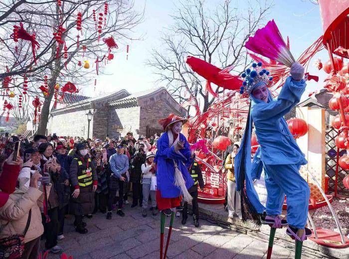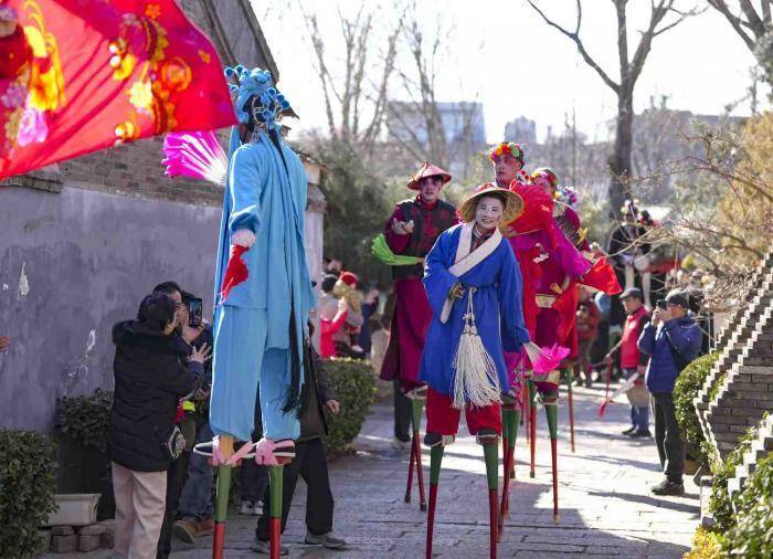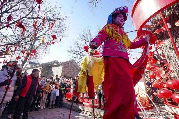 来自河北的民俗高跷艺人带来精彩献艺。