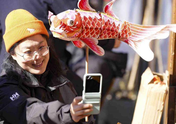游客在庙会游玩。