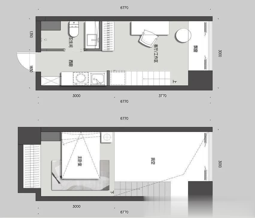 今日要介绍的这套蜗居LOFT,建面仅35平,实际面积20平,在同类户型里算很小的了。所幸层高4.5米,完全能实现动静分离的设想。