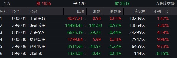 【大河财立方消息】4月15日,A股多个指数盘中跳水翻绿,截至收盘,上证指数微涨0.01%,深证成指跌0.97%,创业板指跌1.22%,科创综指涨0.33%。全市场超过3500只个股下跌。